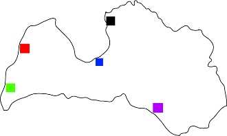 Minkä värisen neliön kohdalla on Latvian pääkaupunki Riika?
