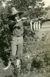 Ernest kalassa 10-vuotiaana. Aikuisena Hemingway sanoi, että kaikki hyvä amerikalainen kirjallisuus on lähtöisin yhdestä ainoasta mestariteoiksesta. Mikä oli kirja jota hän piti näin suuressa arvossa?