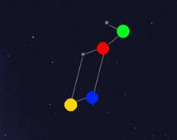Minkä värisen ympyrän kohdalla on Lyyran tähdistön kirkkain tähti Vega?