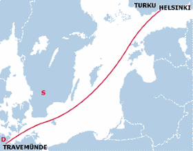 Finnjet liikennöi suurimman osan urastaan Helsingin ja Travemünden välillä. Kuinka monessa tunnissa matka Suomesta Saksaan parhaimmillaan taittui?